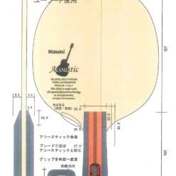 O Nittaku Acoustic LG foi feito usando os mesmos princípios usados na fabricação de instrumentos de corda. Os materiais utilizados para esta lâmina são mais espessos e macios do que os materiais utilizados no Violino Nittaku. Isso fornece ao Acústico características estáveis ao atacar e bloquear. Esta versão tem uma alça maior que torna a lâmina mais pesada e, portanto, um pouco mais rápida que a lâmina acústica Nittaku normal. Também pode ser recomendado para jogadores que acham que o tamanho padrão da alça é muito fino. Fabricado no Japão.