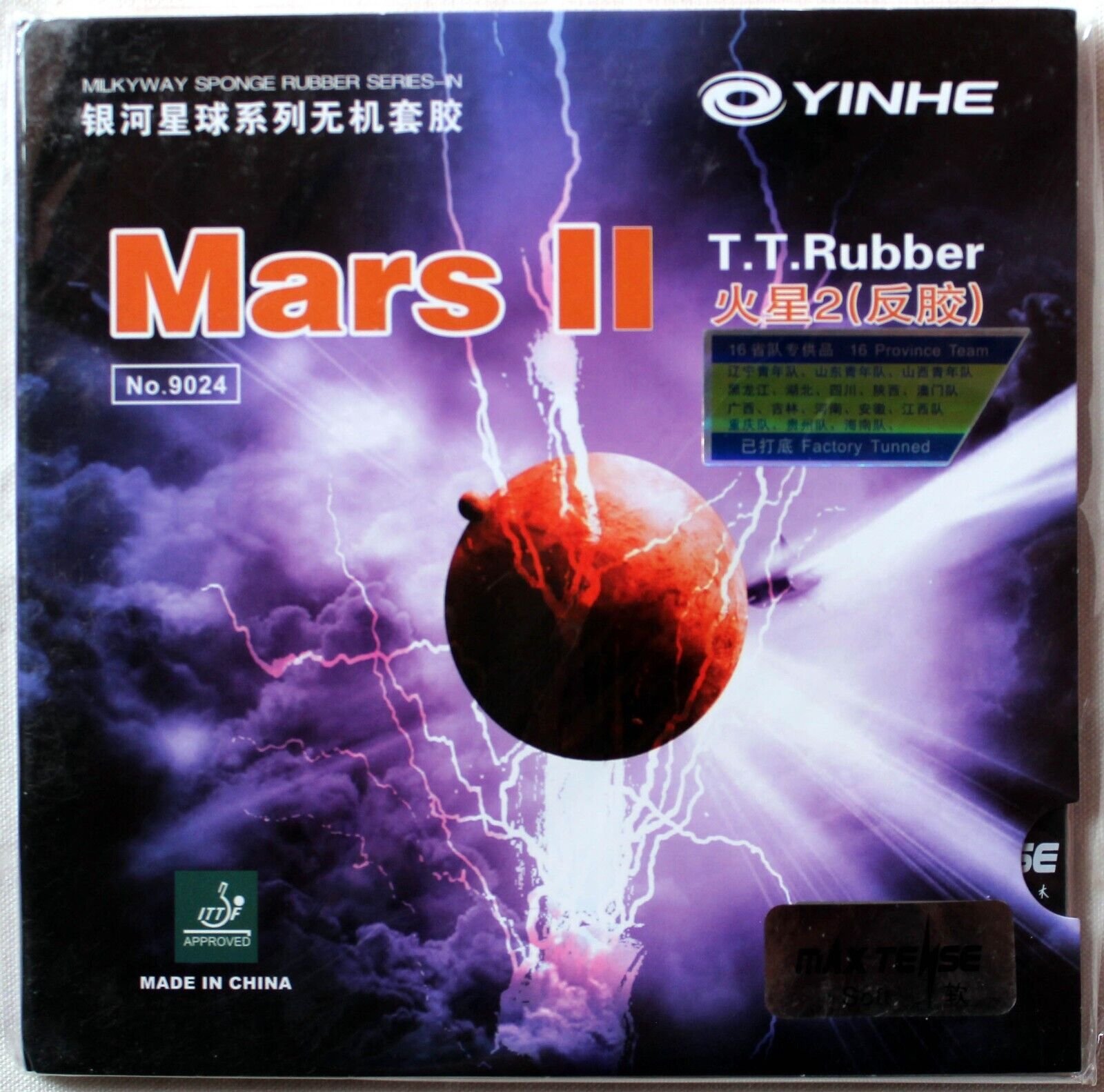 YINHE GALAXY MARS II No momento da compra escolha entre as cores: preto ou vermelho Fabricado para a bola de de plástico 40+ Esponja e peso semelhante a famosa borracha Tenergy 64 da Butterfly porém com baixo custo… ESPECIFICAÇÕES DA BORRACHA: ESTILO: OFENSIVA ESPESSURA: MAX VELOCIDADE: 12 EFEITO: 9